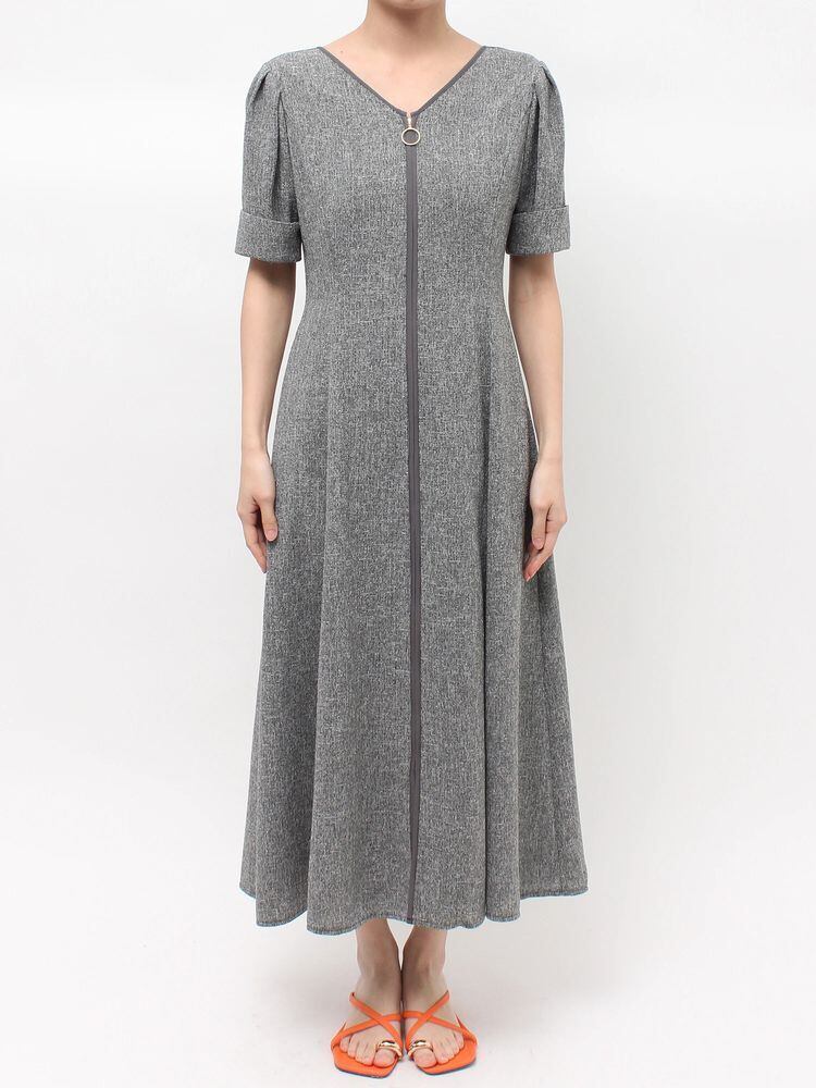 軽やかなサマーツイードを使用したフィットアンドフレアワンピース。