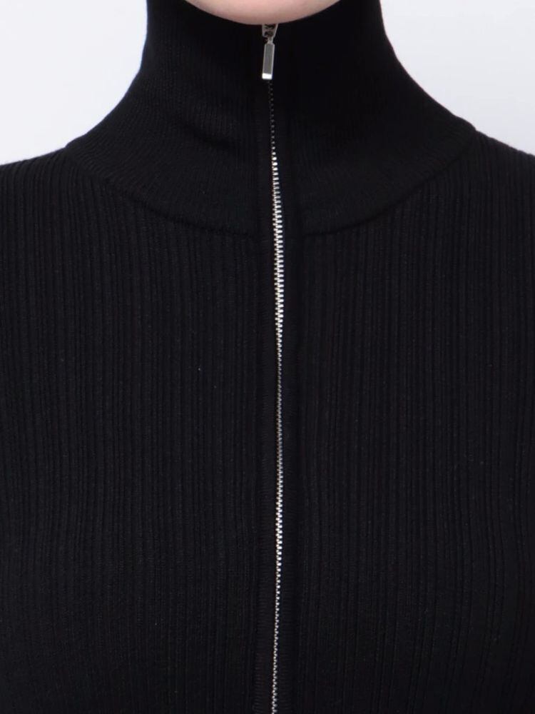 リブの太さを変えて、ウエストをキュッと強調しているので