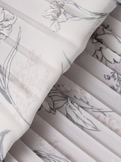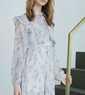 軽やかなシフォンに淡いタッチで描かれた花々が女性らしい柔らかな雰囲気を演出しています。
